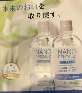 このナノデンタル生理食塩水のみで作られておりワンコの口の中を浄化してくれる安心安全な液体なんです。院長も夜寝る前にブクブクブクブク。