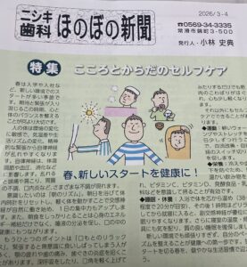 ほのぼの新聞3〜4月号ご来院頂いた患者様にお渡ししています。
